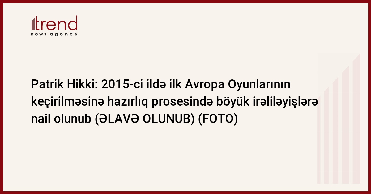 P.Hikki bildirib ki, yarışlara hazırlıq prosesində böyük irəliləyişlərə nail olunub, Təşkilat Komitəsinin işi qrafikə uyğun aparılır. Onun sözlərinə görə, bu oyunların uğuru həm Azərbaycanın, həm də Avropanın uğuru olacaq.