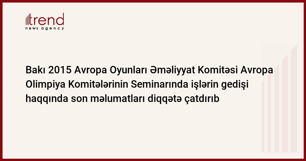 Bakı 2015 Avropa Oyunları Əməliyyat Komitəsinin (BEGOC) yüksək vəzifəli üzvləri işlərin gedişi haqqında hesabatı bu gün Kipr Respublikasının paytaxtı Nikoziya şəhərində Avropa Olimpiya Komitələrinin (EOC) Seminarına təqdim ediblər.