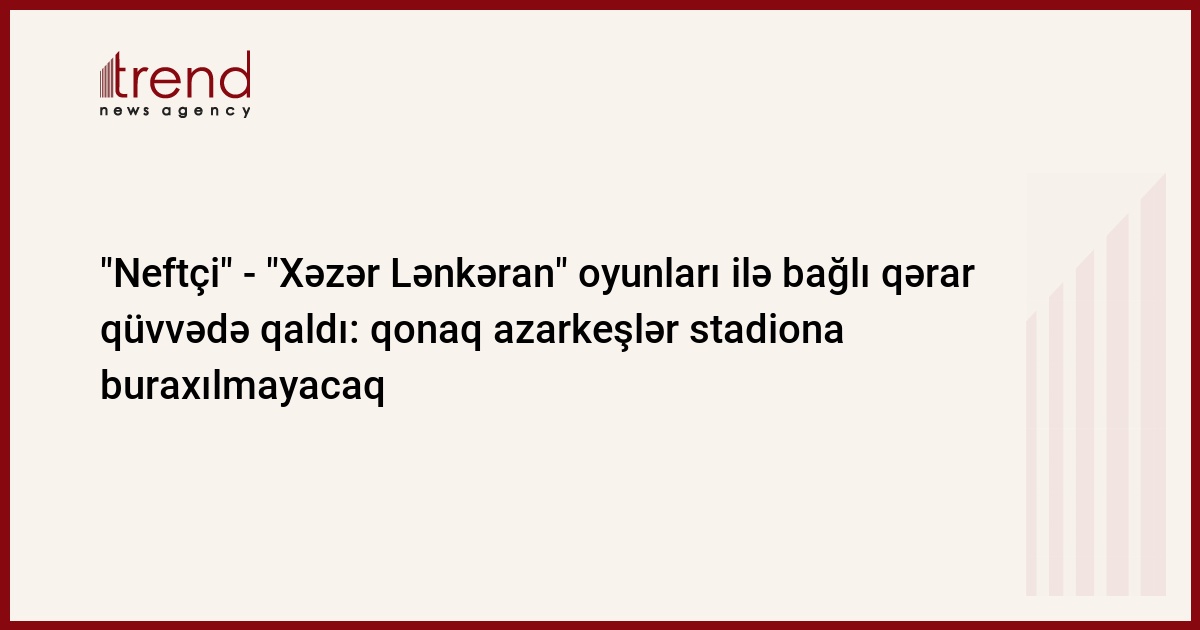Belə ki, "Neftçi" və "Xəzər Lənkəran" klublarının iştirakı ilə baş tutacaq Premyer Liqa və Azərbaycan kuboku matçlarında, bu klubların öz aralarında keçirəcəyi oyunlarda qonaq komandanın azarkeşlərinin stadionlarda iştirakına qadağa qoyulur.