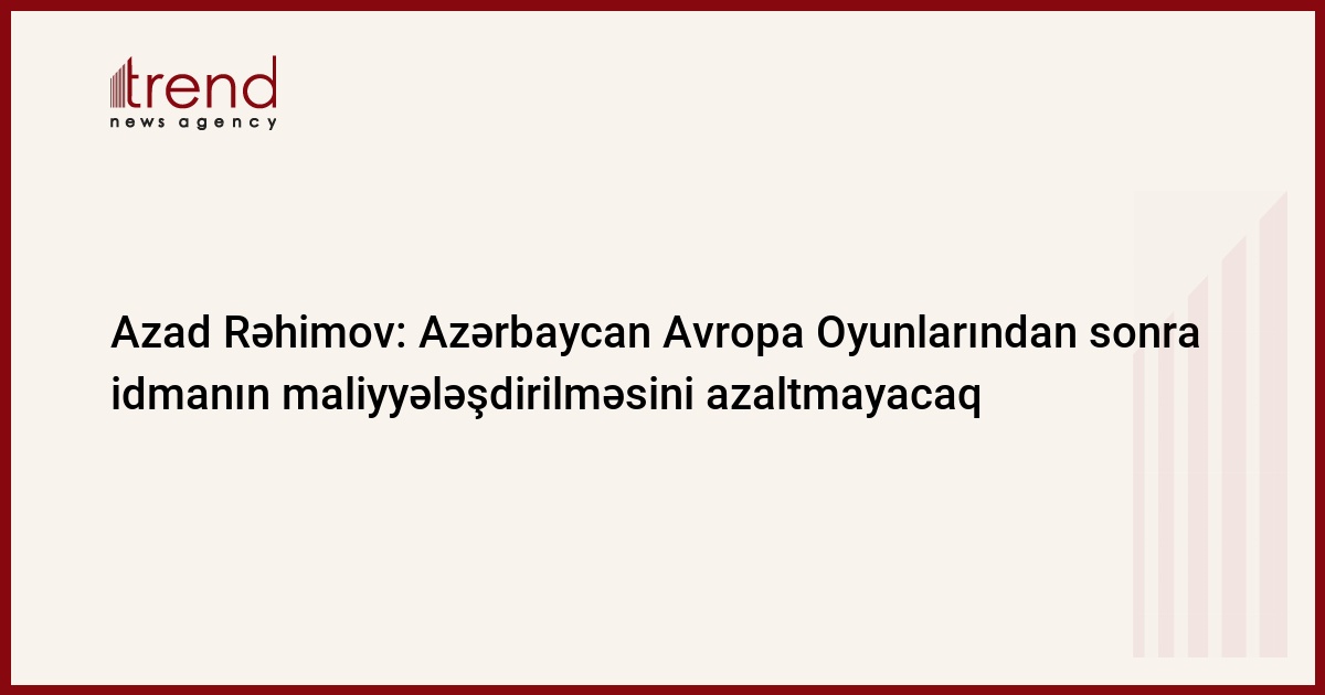 Azərbaycan "Bakı-2015" ilk Avropa Oyunlarından sonra idman sahəsinin maliyyələşdirilməsini azaltmaq niyyətində deyil. Bunu Trend-ə gənclər və idman naziri Azad Rəhimov deyib.