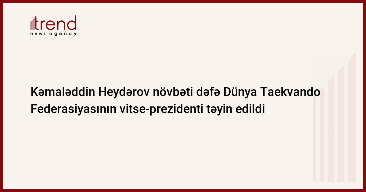 Azərbaycan Taekvando Federasiyasının prezidenti Kəmaləddin Heydərov növbəti dəfə Dünya Taekvando Federasiyasının (DTF) vitse-prezidenti təyin edilib.