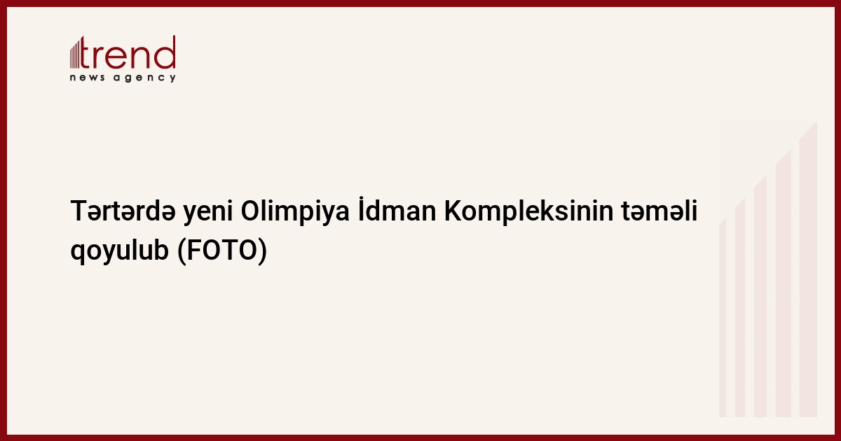 Məlumat üçün bildirək ki, Tərtər Olimpiya İdman Kompleksinin tikintisi Prezident İlham Əliyevin 27 fevral 2014-cü il tarixli 118 nömrəli Fərmanı ilə təsdiq edilmiş “Azərbaycan Respublikası regionlarının 2014-2018-ci illərdə sosial-iqtisadi inkişafı Dövlət Proqramı”nda nəzərdə tutulub.