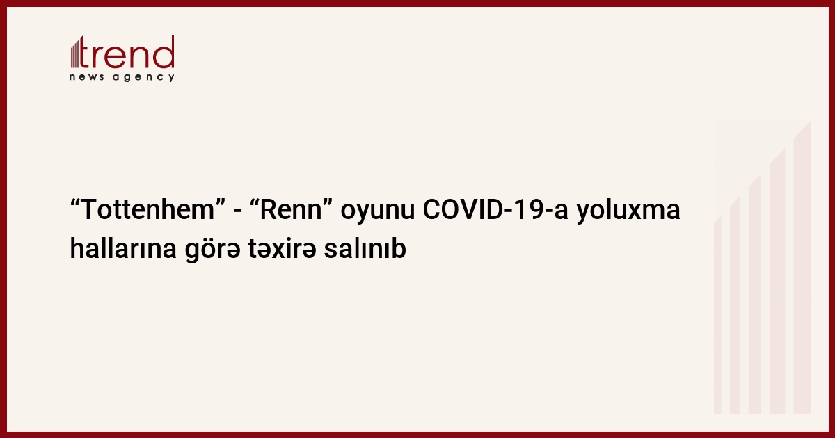İngiltərənin "Tottenhem" futbol klubu komandada aşkar edilən COVID-19-a yoluxma hallarına görə Fransanın "Renn" komandası ilə oynamayacaq.