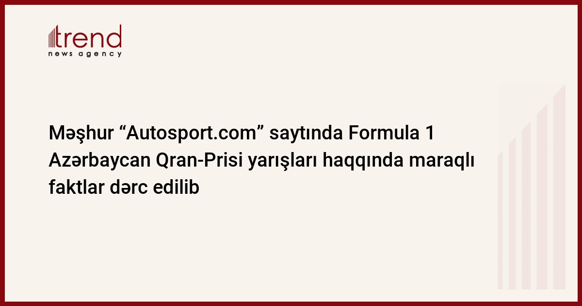 Məşhur “Autosport.com” saytında Formula 1 Azərbaycan Qran-Prisi yarışları haqqında maraqlı faktlar və rəqəmlər dərc edilib.