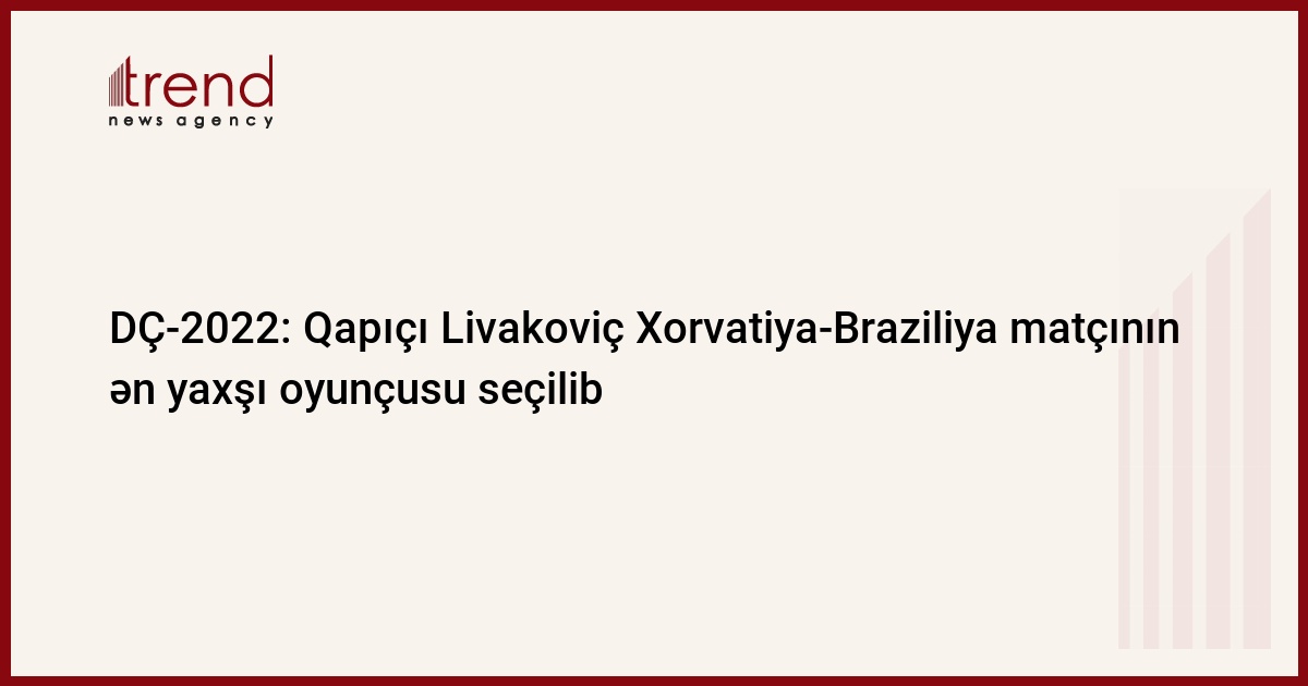 Xorvatiyalı qapıçı Dominik Livakoviç DÇ-2022-nin 1/4 finalında Braziliyaya qarşı keçirilən oyunda ən yaxşı oyunçu seçilib.