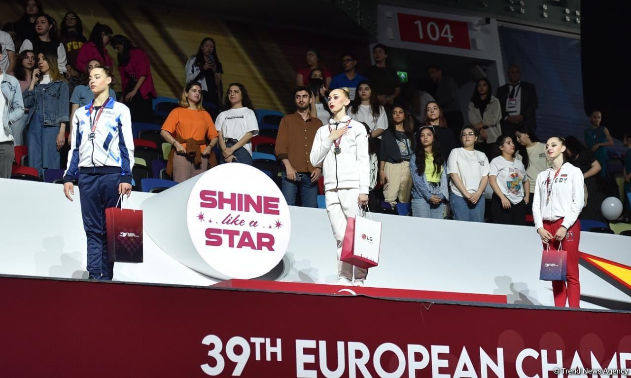Mayın 21-də Bakıda Milli Gimnastika Arenasında fbədii gimnastika üzrə 39-cu Avropa çempionatının fərdi proqramda çıxış edən gimnastları arasında qalib və mükafatçılarının mükafatlandırılması mərasimi keçirilib.