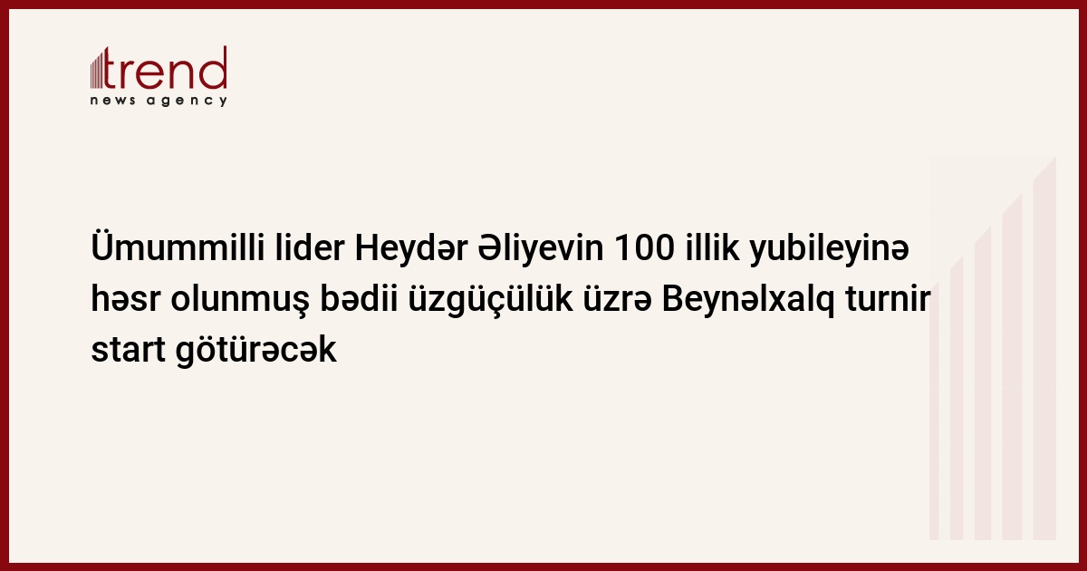 Ümummilli lider Heydər Əliyevin 100 illik yubileyinə həsr olunmuş bədii üzgüçülük üzrə Beynəlxalq turnir start götürəcək.