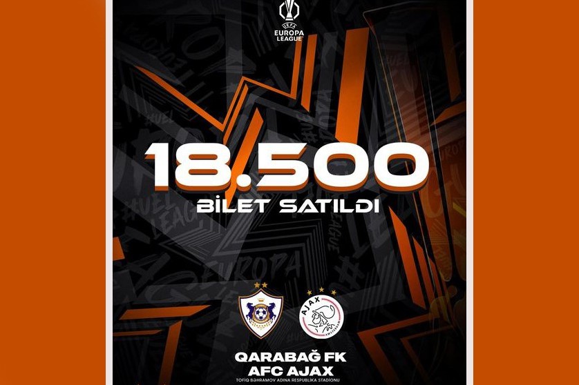 UEFA Avropa Liqasının Liqa mərhələsi çərçivəsində keçiriləcək “Qarabağ” - “Ayaks" (Niderland) oyununa 18500 bilet satılıb.