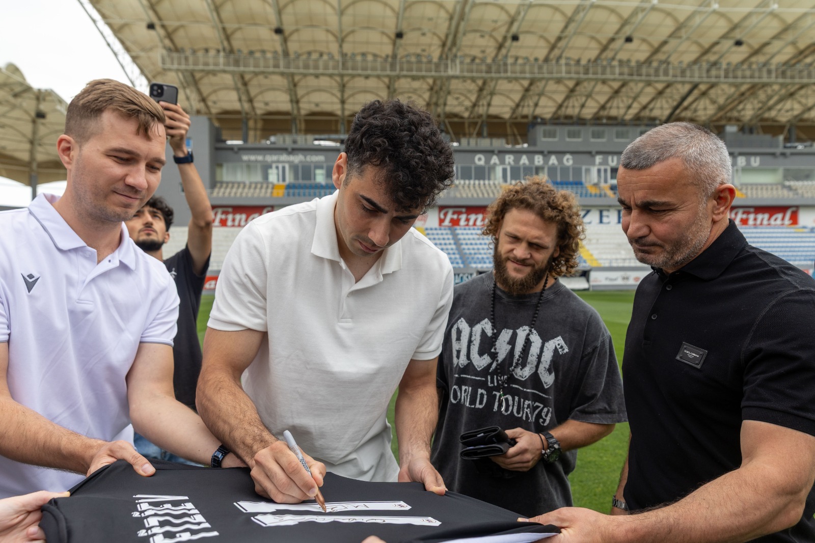 Baş məşqçı döyüşçünü stadionla tanış edib. Qurban Qurbanov Azərbaycanlı döyüşçüyə “11” nömrəli klub formasını hədiyyə edib. Rafael Fiziev isə öz növbəsində “Qarabağ” klubunun baş məşqçisinə UFC-nin rəsmi əlcəklərini təqdim edib.