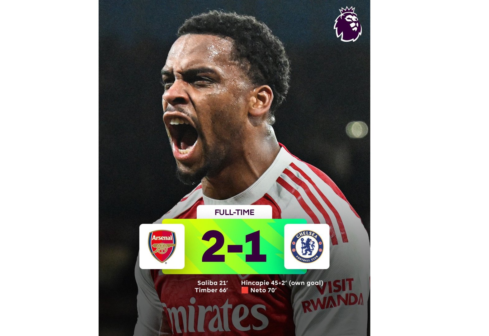 Trend-in məlumatına görə, London derbisi ev sahibi komandanın 2:1 hesablı qələbəsi ilə başa çatıb.