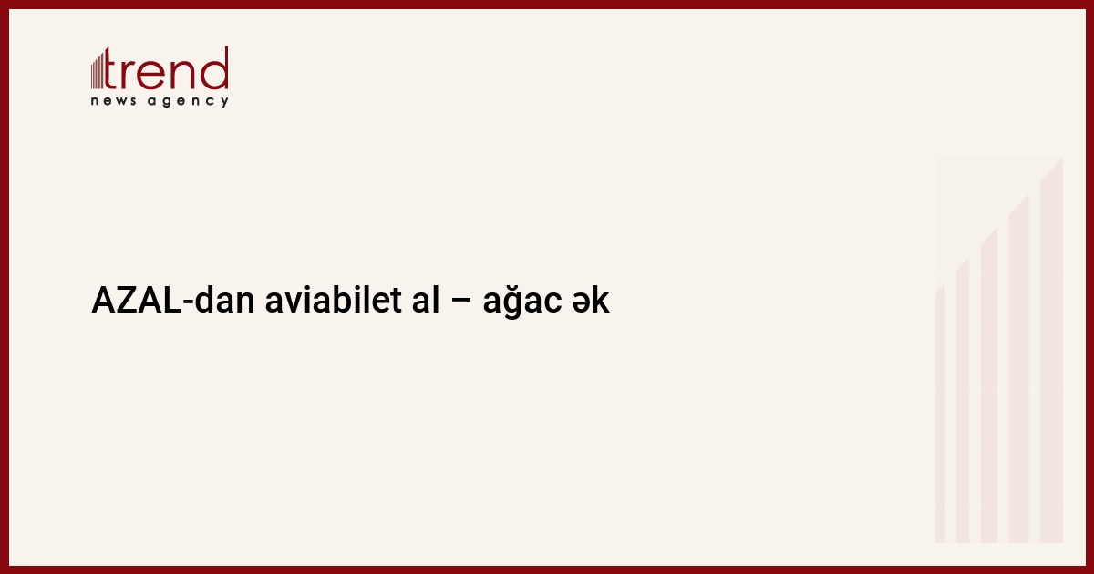 "Azərbaycan Hava Yolları" QSC-nin mətbuat xidmətindən Trend-ə verilən məlumata görə, mayın 3-dən 10-dək AZAL və AZALJET-in istiqamətləri üzrə satılan hər bir aviabiletə görə aviaşirkət bir ağac əkəcək.