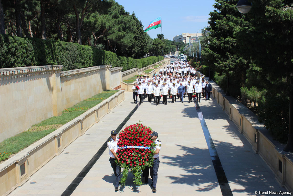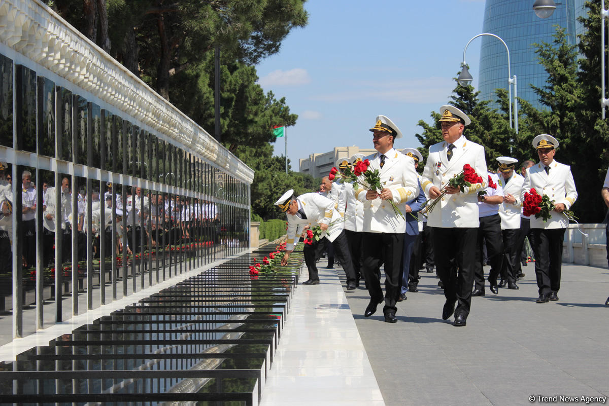 Sonra Şəhidlər xiyabanına gələn ziyarətçilər Azərbaycanın müstəqilliyi və ərazi bütövlüyü uğrunda mübarizədə canlarından keçən qəhrəman Vətən övladlarının, o cümlədən dənizçilərin xatirəsini ehtiramla yad edib, məzarları üzərinə gül dəstələri düzüb, “Əbədi məşəl” abidəsinin önünə əklil qoyublar.