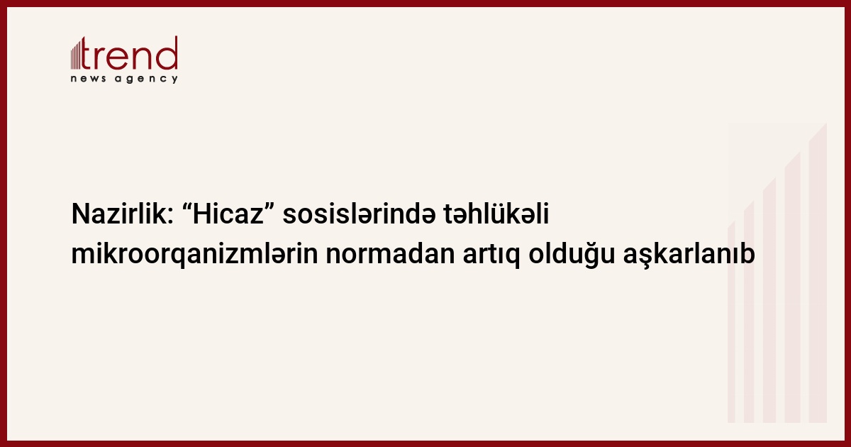 İqtisadiyyat Nazirliyi tərəfindən aparılan tədbirlər çərçivəsində müxtəlif ticarət obyektlərində satışda olan malların ilkin laborator müayinəsi zamanı “Hicaz 313” MMC tərəfindən istehsal olunan ət məhsullarının tərkibində insanların həyat və sağlamlığı üçün təhlükə yaradan mikroorqanizmlərin normativ sənədlərlə yol verilən miqdardan artıq olduğu müəyyən edilib.