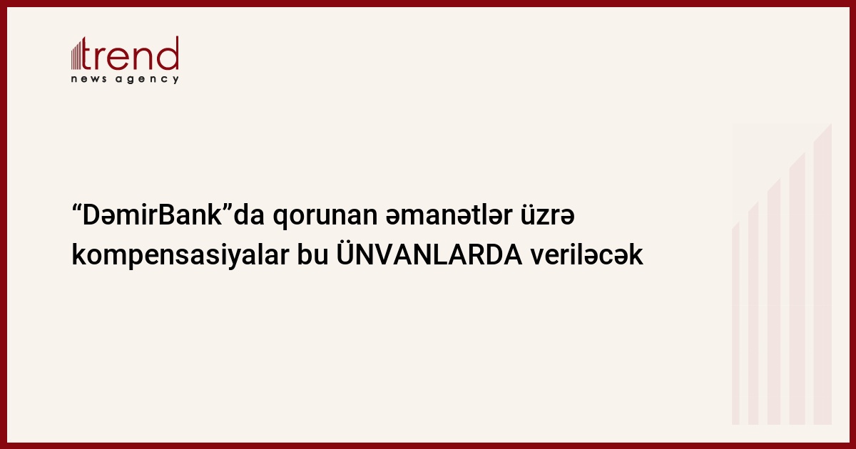 Bağlanmış “DəmirBank” ASC-də qorunan əmanətlər üzrə kompensasiyaların veriləcəyi ünvanlar açıqlanıb.