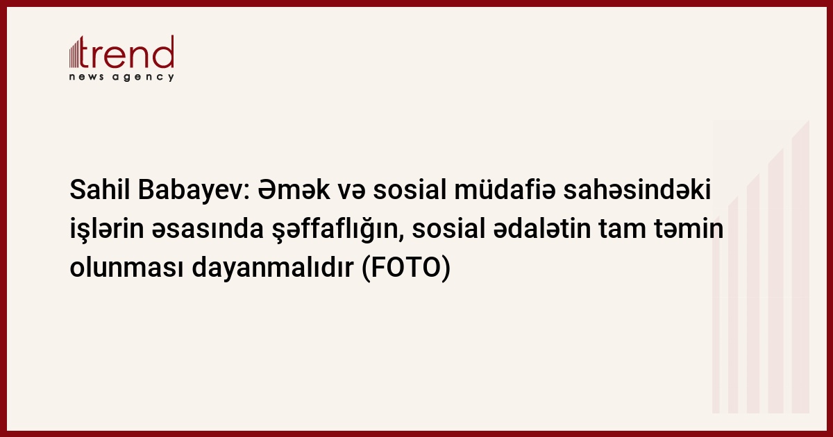 Nazirlikdən Trend-ə verilən məlumata görə, əmək və əhalinin sosial müdafiəsi naziri Sahil Babayev əmək və sosial müdafiə sahələrində idarəetmə sistemlərinin mütərəqqi dünya təcrübəsi əsasında təkmilləşdirilməsi, bu sahələr üzrə əhaliyə xidmətlərdə müasir iş üsullarının, şəffaflığın və sosial ədalət prinsiplərinin, elektron texnologiyaların geniş tətbiqinin təmin edilməsinin Azərbaycan Prezidenti İlham Əliyev tərəfindən nazirlik qarşısında müəyyən edilən əsas vəzifələrdən olduğunu vurğulayıb.
