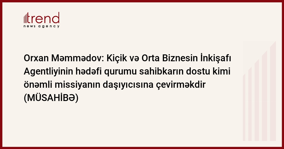 Kiçik və Orta Biznesin İnkişafı Agentliyinin İdarə Heyətinin sədri Orxan Məmmədovun Trend-ə müsahibəsi: