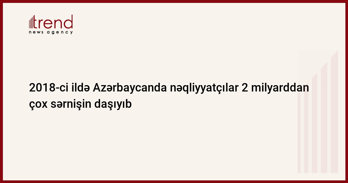 2018-ci ildə Azərbaycanda nəqliyyatçılar 2 milyard 2,8 milyon nəfərə və ya 2017-ci illə müqayisədə 1,5 faiz çox sərnişinə xidmət göstəriblər.