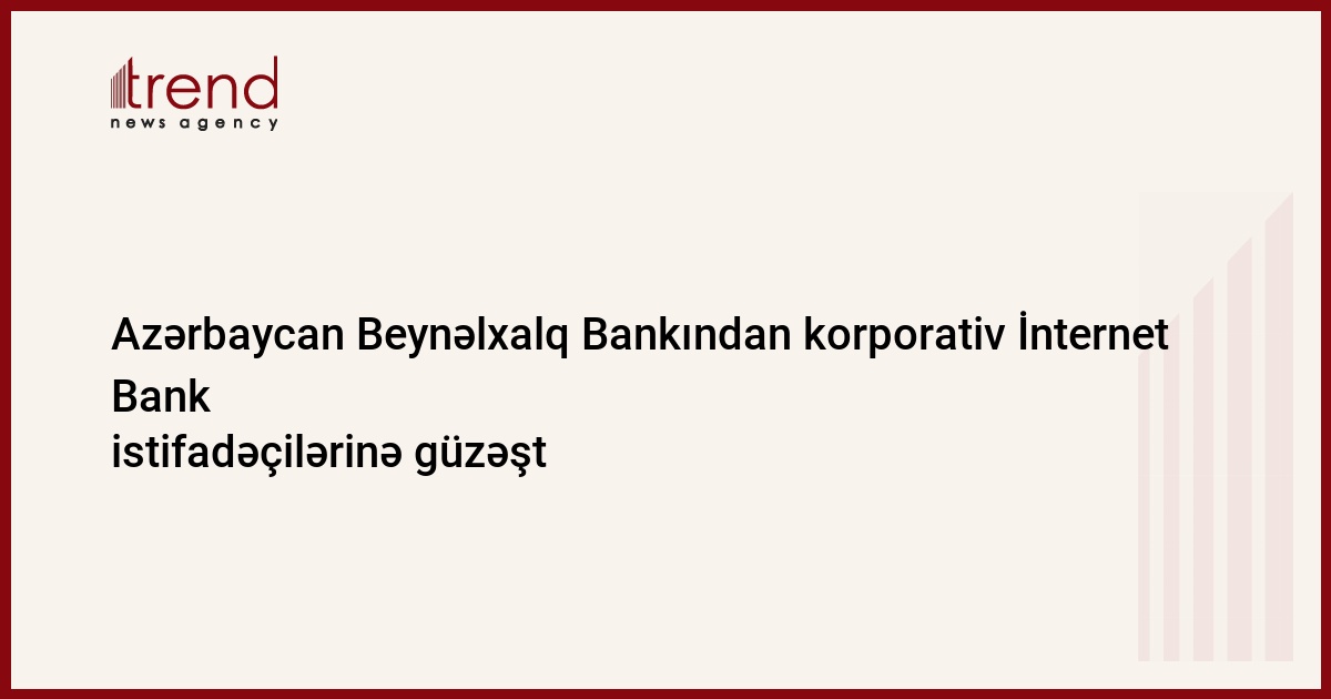 Azərbaycan Beynəlxalq Bankı İnternet Bank xidmətindən istifadə edən korporativ müştərilərinə daha bir üstünlük təqdim edib. Bank bu müştərilər üçün güzəştli məzənnənin tətbiqinə başlayıb. Belə ki, konvertasiya əməliyyatlarını İnternet Bank xidməti üzərindən aparan müştərilərə bu əməliyyatları bankın standart kursundan aşağı məzənnə ilə yerinə yetirmək imkanı yaradılıb.