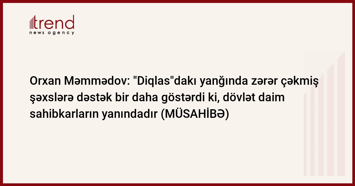 Bakının Nizami rayonu ərazisindəki “Diqlas” ticarət mərkəzində baş vermiş yanğında zərər çəkmiş sahibkarlara dövlət tərəfindən müxtəlif dəstək tədbirləri göstərilir. Bu məqsədlə İşçi qrupu və sahibkarların suallarının operativ cavablandırılması üçün "qaynar xətt" yaradılıb, 5 ay icarə haqqı ödənilməməklə sahibkarlara Bakının müxtəlif ərazilərində ticarət obyektləri təklif olunub. Aprelin 5-dən etibarən isə sahibkarlara maddi yardımın göstərilməsinə başlanılıb. Ticarət mərkəzində baş vermiş yanğından zərər çəkmiş sahibkarlara göstərilən dövlət dəstəyi tədbirləri barədə Trend-in suallarını İşçi qrupunda təmsil olunan Azərbaycanın Kiçik və Orta Biznesin İnkişafı Agentliyinin (KOBİA) İdarə Heyətinin sədri Orxan Məmmədov cavablandırıb.