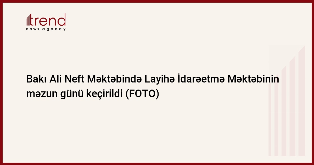 Bakı Ali Neft Məktəbinin (BANM) və Böyük Britaniyanın “TwentyEighty Strategy Execution” (“STRATEX”) şirkətinin birgə təşkilatçılığı ilə Layihə İdarəetmə Məktəbinin (SPM) məzun günü keçirilib. Təlim proqramı ABŞ-ın Corc Vaşinqton Universitetinin magistr proqramına əsaslanıb.