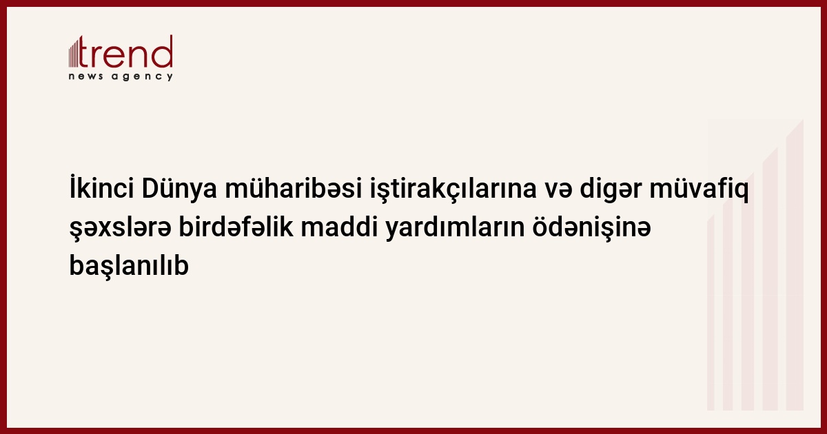 Xatırladaq ki, İkinci Dünya müharibəsi iştirakçılarının hər birinə 1000 (min) manat məbləğində birdəfəlik maddi yardım ödənilir.