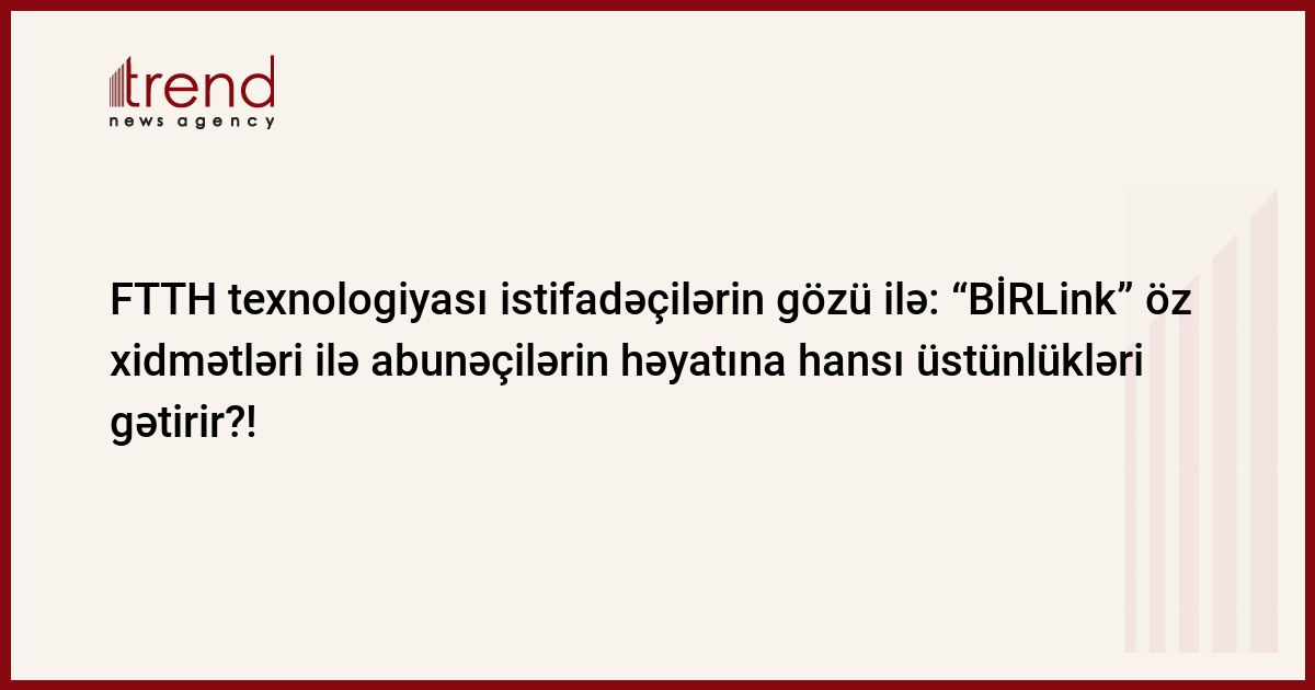 “BİRLink”in xidmət fəlsəfəsinin kökündə məhz abunəçilərin maksimum dərəcədə faydalanması və rahatlığı durduğundan, təqdim olunan xidmətlərə dair “BİRLink” abunəçilərinin rəyləri olduqca önəmlidir. “BİRLink”in öz abunəçiləri arasında keçirdiyi sorğunun nəticələri deməyə əsas verir ki, abunəçilərin əksəriyyəti FTTH texnologiyası və onun verdiyi üstünlüklər barədə məlumatlıdır. Rəyi soruşulan bəzi abunəçilər isə “BİRLink”in xidmətlərindən istifadənin onların həyatına hansı rahatlığı gətirdiyi ilə bağlı fikirlərini bu cür ifadə ediblər: