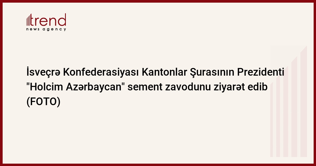 İsveçrə Konfederasiyası Kantonlar Şurasının Prezidenti Jan-Rene Furniye Azərbaycana rəsmi səfəri çərçivəsində Holcim Azərbaycan şirkətinin Qaradağ Sement zavodunu ziyarət edib.