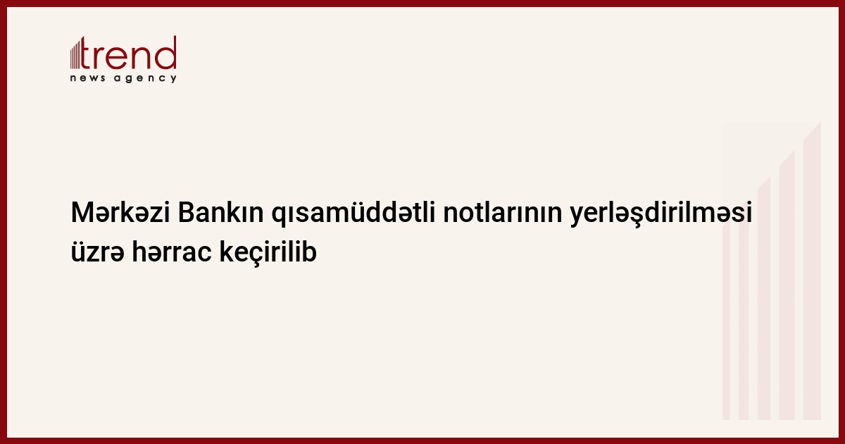 Bu gün Bakı Fond Birjasında (BFB) Azərbaycan Respublikasının Mərkəzi Bankının (AMB) 50103176S dövlət qeydiyyat nömrəli, 170 mln manat həcmində, 28 gün tədavül müddətli qısamüddətli notlarının yerləşdirilməsi üzrə hərrac keçirilib.