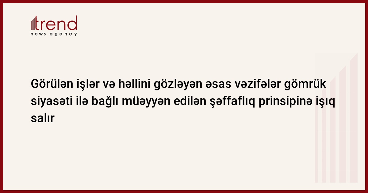 Beləliklə, gömrük sisteminin yaxşılaşdırılması istiqamətində həm bugünədək görülən işlər, həm də qarşıda həllini gözləyən əsas vəzifələr dövlətin gömrük siyasəti ilə bağlı müəyyən etdiyi şəffaflıq prinsiplərinə işıq salır və gələcək perspektivdə ümumi nəticələrin daha da yaxşı olacağına ümid yaradır.