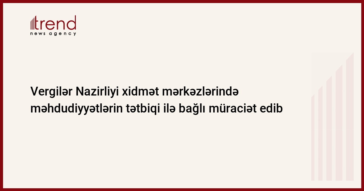 Vergilər Nazirliyi xidmət mərkəzlərində məhdudiyyətlərin tətbiqi ilə bağlı vergi ödəyicilərinə müraciət edib.