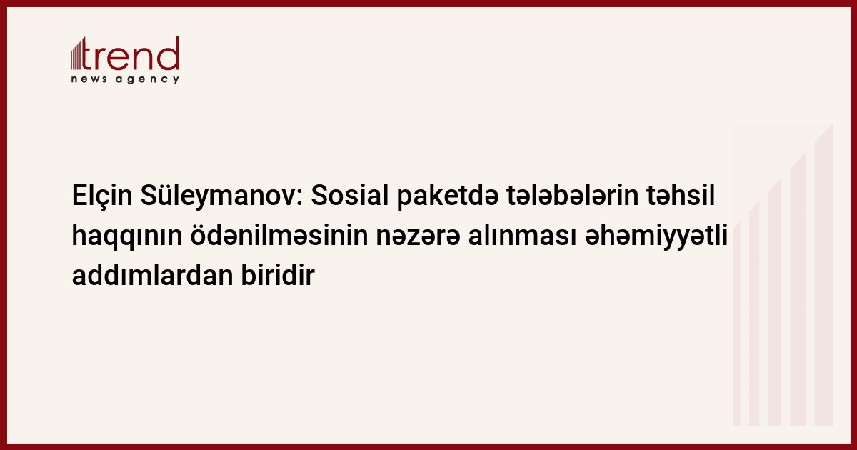 "Koronavirus pandemiyası ilə əlaqədar inkişaf etmiş ölkələrdə çox əhəmiyyətli iqtisadi paketlər hazırlanır. Azərbaycan da bu virusa qarşı qabaqlayıcı tədbirlər həyata keçirən ölkələrdən biridir. Bu məqsədlə bütün təhsil müəssisələrində tədrisin dayandırılması da əhəmiyyətli addımlardandır. Eyni zamanda, iqtisadi dəstək proqramların təşkilini, eləcə də sosial həssas qrupa daxil edilən ailələrin üzvü olan tələbələrə dəstəyin göstərilməsini alqışlamaq lazımdır. Sosial baxımdan həssas əhali qrupuna aid edilən ailələrin üzvü olan tələbələrin təhsil haqqı xərclərinin ödənilməsinə dəstəyin göstərilməsi ilə bağlı müzakirələrin aparılması onu göstərir ki, koronavirusun iqtisadi təsirlərini müəyyən edərkən bu ailələrin övladlarının təhsil haqqı məsələsi də dövlətin diqqətindən yayınmayıb".