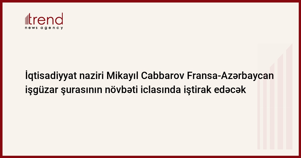 Trend-in "MEDEF International"ın saytına istinadən verdiyi məlumata görə, vebinar formatında keçiriləcək tədbirdə Azərbaycanın İqtisadiyyat naziri Mikayıl Cabbarov iştirak edəcək.