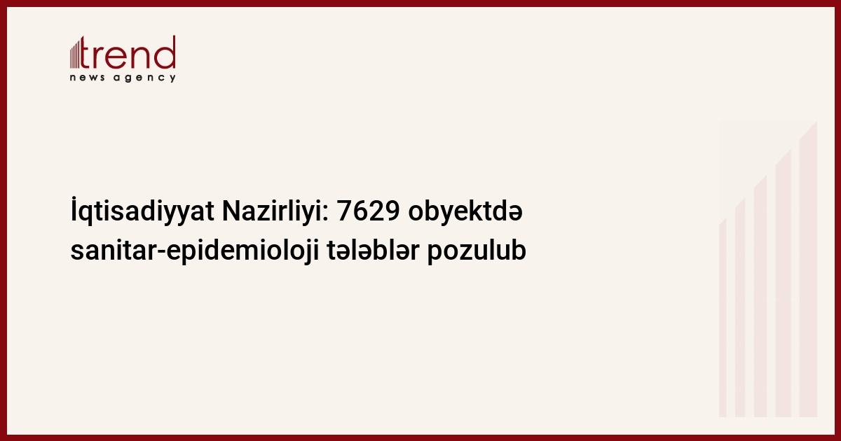 Nazirliyin mətbuat xidmətindən Trend-ə bildirilib ki, pandemiya şəraitinin və xüsusi karantin rejiminin müvafiq qayda və tələblərinə əməl edilməsinə nəzarət məqsədilə iyulun 30-da keçirilmiş monitorinqlər zamanı Nərimanov rayonunda “Eqoist Şirniyyatı” dükanında, “Face Studio” xidmət obyektində, Heydər Heydərova məxsus qarışıq mallar mağazasında, Sabunçu rayonunda “Grandmart Supermarket”də, Mahir Məcidova məxsus ictimai iaşə obyektində, Xətai rayonunda “Helium Mağaza”da, Əmrah İsmayılova məxsus inşaat malları mağazasında, Binəqədi rayonunda “Uşaq geyim-oyuncaqlar satışı” mağazasında, "Buta Farm" MMC-yə məxsus aptekdə, Suraxanı rayonunda “Xəzər Market”də, Lətifə Şamiyevaya məxsus şirniyyat sexində, Qaradağ rayonunda “Dönərxana online satış” ictimai iaşə obyektində, Tural Ağayevə məxsus “İçkilər və şirələr” mağazasında, Yasamal rayonunda “Faceup Beauty” gözəllik salonunda, Murad Zeynalova məxsus ət satışı mağazasında, Səbail rayonunda “Entrée Restoranı”nda, "Zeytun Pharmaceuticals” MMC-yə məxsus aptekdə, Xəzər rayonunda "Oba Market"də, "Al Market"də, Nəsimi rayonunda Eldar İsmayılova, Şahlar Əliyevə məxsus oyuncaq, Kamran Eyubova məxsus gül mağazalarında, Nizami rayonunda İsmayıl İbrahimova məxsus ərzaq, "Hobbykitchen" MMC-yə məxsus qab-qacaq mağazalarında, Şamaxı rayonunda “Dostluq Ticarət Mərkəzi”ndə, Adil İmanova, Rəşad Babayevə, Elçin Rəhimova, Sadiq Mikayılova və Amil Bayramova məxsus ticarət obyektlərində, Masallı rayonunda “Ağa Market”də, “Sevimli Market”də, “Bol Market”də, “Buta Market”də, “Oba Market”də, Füzuli rayonunda Hikmət Verdiyevə məxsus “Avtomobil ehtiyat hissələri”, Yusif Bağırova məxsus “Tikinti materialları” mağazalarında, Salman Abbasova məxsus “Market”də, Bərdə rayonunda Rauf Süleymanova, Elçin Nəsirova, Vasif Məmmədova məxsus ət kəsimi obyektlərində, ümumilikdə, monitorinq aparılmış 809 obyektin 144-də zəruri sosial davranış qaydaları və sanitar-epidemioloji tələblərə əməl olunmaması hallarına rast gəlinib.