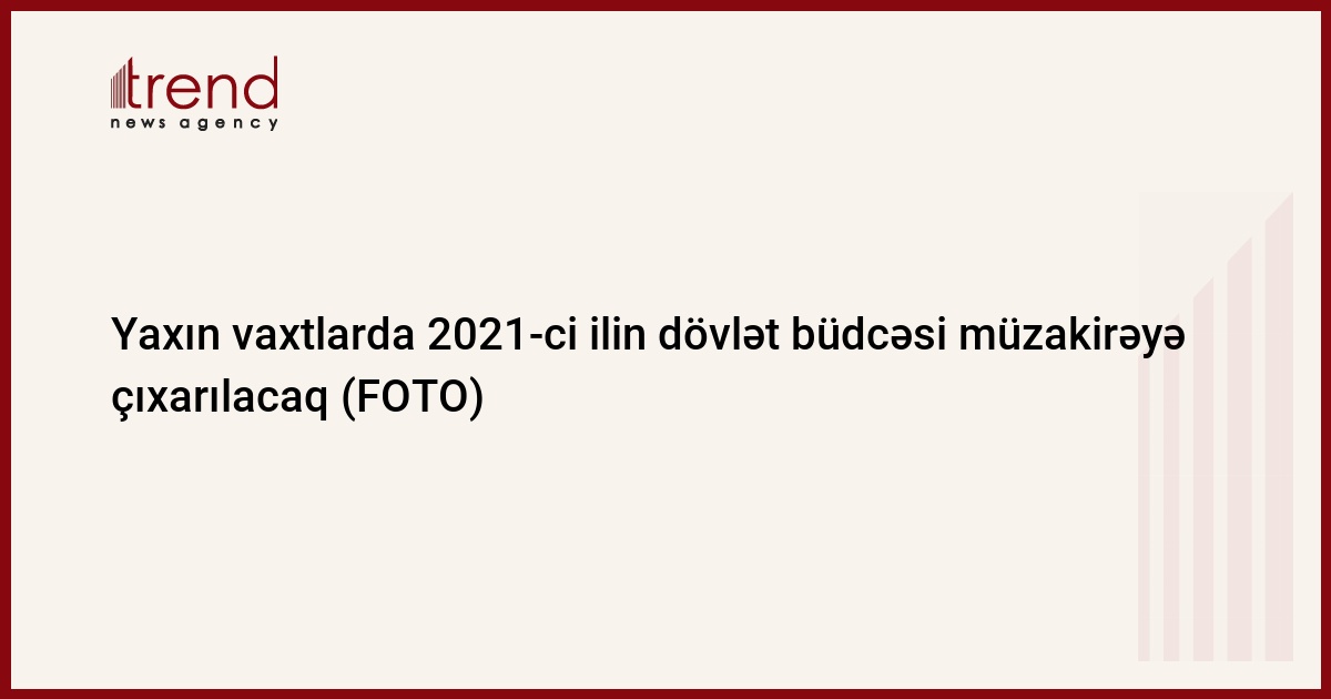 Yaxın vaxtlarda 2021-ci ilin dövlət büdcəsi layihəsi müzakirə üçün Milli Məclisə daxil olacaq.