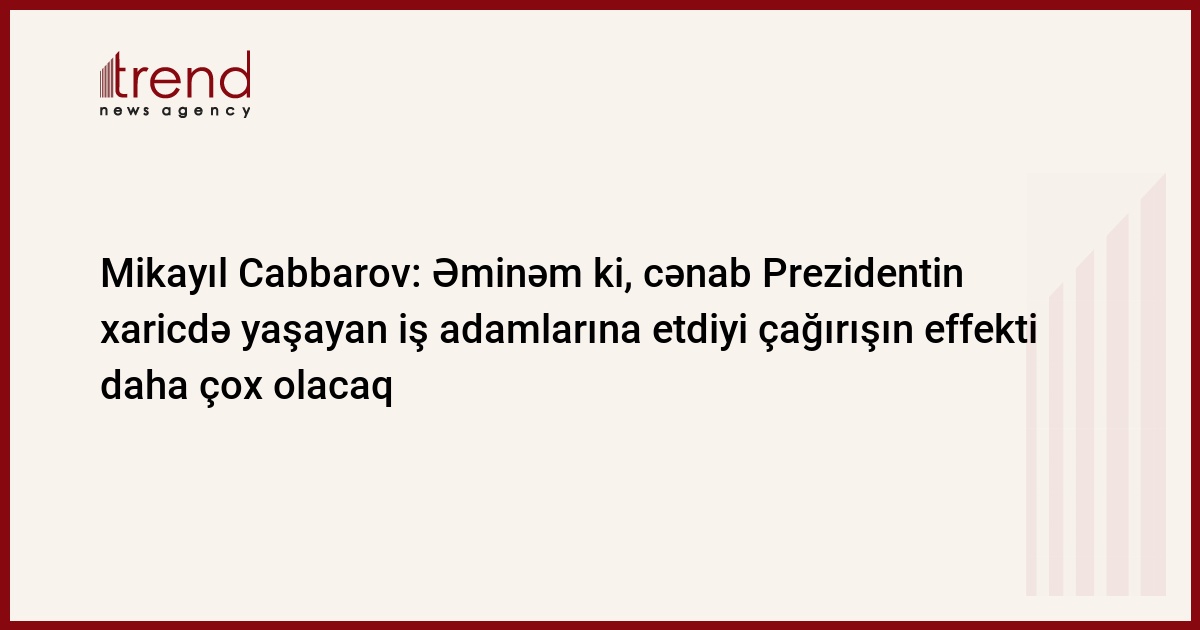 Trend-in məlumatına görə, bunu İqtisadiyyat naziri Mikayıl Cabbarov Prezident İlham Əliyevin iştirakı ilə Sumqayıt Kimya Sənaye Parkının nəzdindəki Peşə Təhsil Mərkəzinin açılışına münasibət bildirərkən deyib.