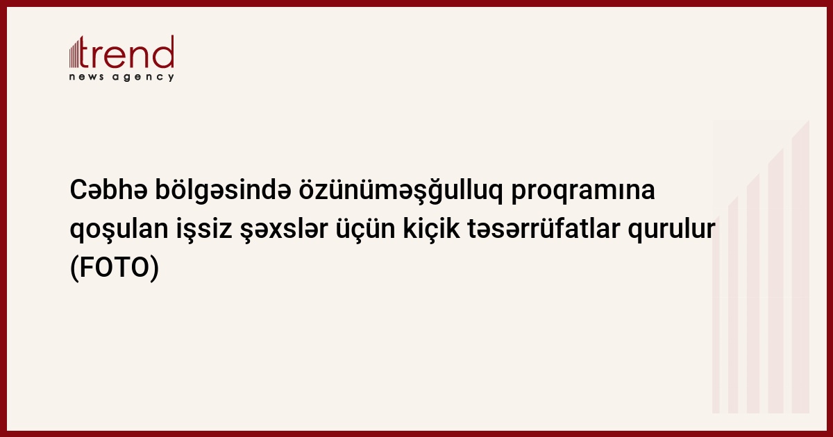 Bu dəfə banklar tərəfindən cəbhə bölgəsində yaşayan və özünüməşğulluq proqramına qoşulan bir qrup işsiz şəxs üçün kiçik təsərrüfatlar qurulur.