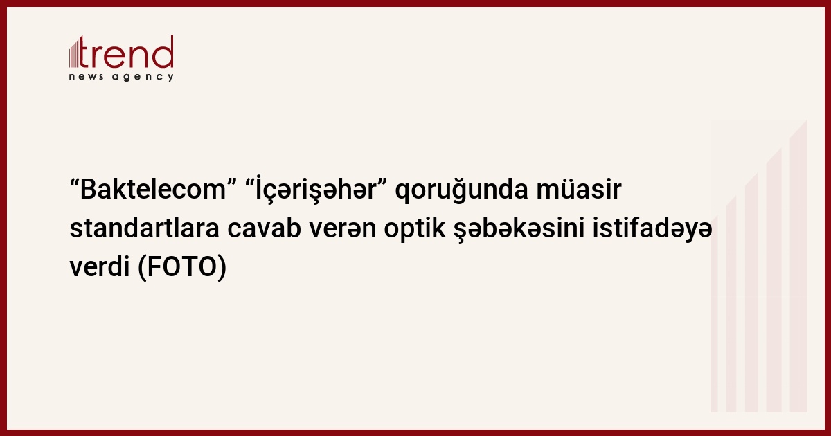 Nəqliyyat, Rabitə və Yüksək Texnologiyalar Nazirliyi “Bakı Telefon Rabitəsi” MMC (Baktelecom) “İçərişəhər” Tarix-Memarlıq Qoruğunda optik şəbəkənin inşasını yekunlaşdırıb.