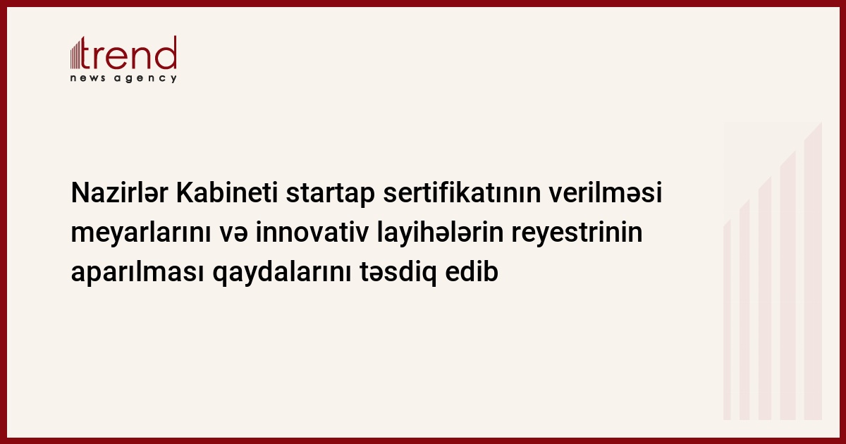 Azərbaycan Nazirlər Kabineti startap müəyyənləşdirilməsi meyarlarını və ictimaiyyətə açıq olan innovativ layihələrin reyestrinin aparılması və startap sertifikatı verilməsi qaydalarını təsdiq edib.