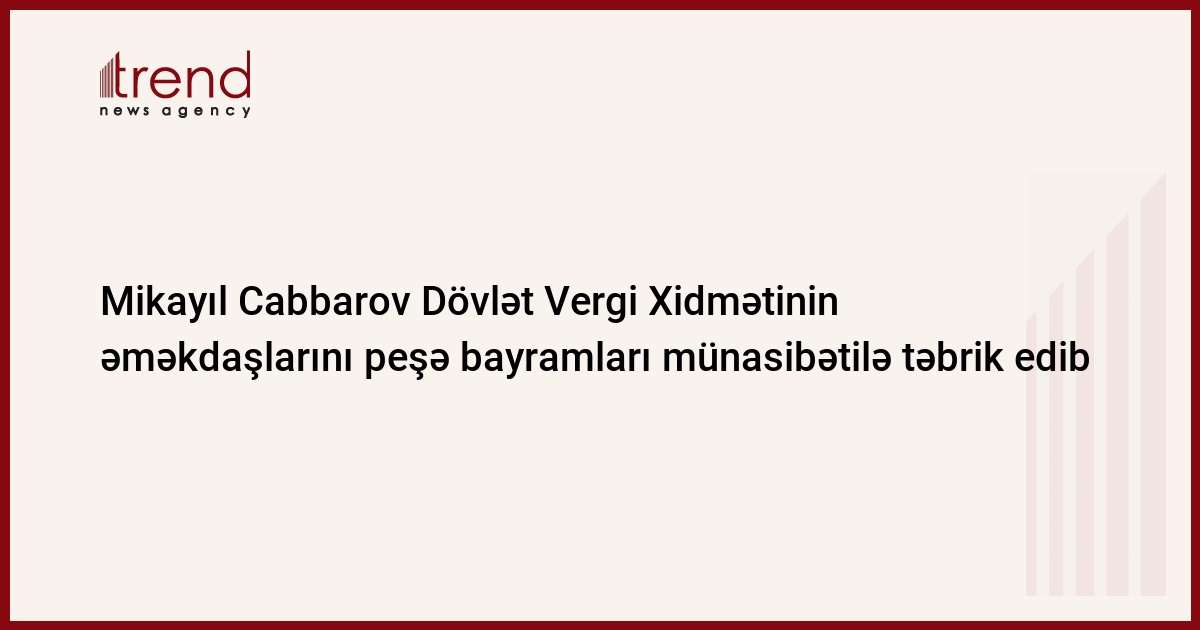 İqtisadiyyat naziri Mikayıl Cabbarov Dövlət Vergi Xidmətinin əməkdaşlarını peşə bayramları münasibətilə təbrik edib.