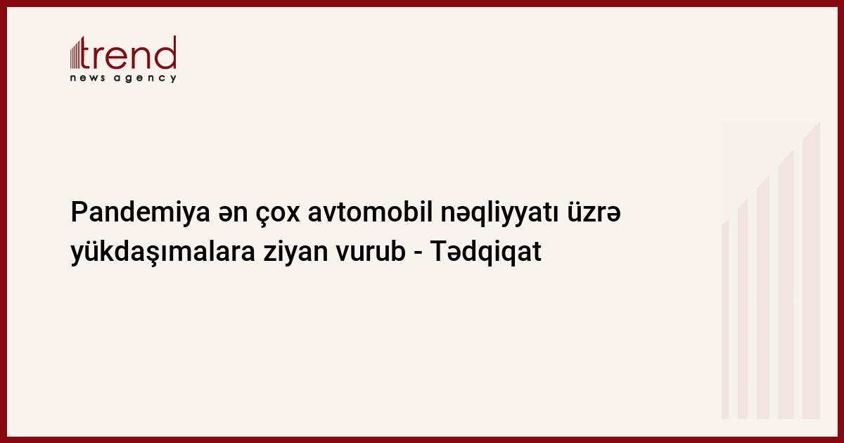Tədqiqat nəticəsində müəyyən edilib ki, vahid nəqliyyat sistemi üzrə pandemiya hesabına dəymiş ziyan ən çox avtomobil nəqliyyatı üzrə yükdaşımalarda müşahidə edilib. Dəniz nəqliyyatı və hava nəqliyyatı üzrə yükdaşımalar isə 2020-ci ilin 2-ci yarısından başlayaraq artdığından həmin sahələrdə yükdaşımaların həcmində 2020-ci il üzrə artım müşahidə olunub.