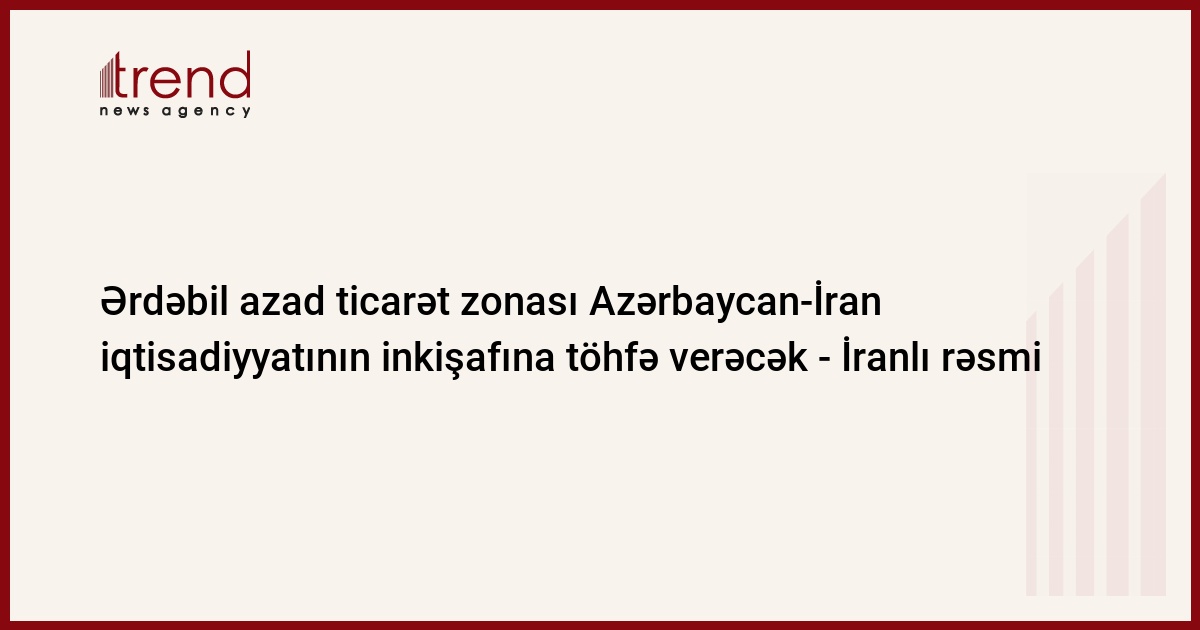 İranın şimal-qərbində yerləşən Ərdəbil vilayətində azad ticarət zonasının yaradılması Azərbaycan-İran arasında iqtisadiyyatın inkişafına töhfə verəcək.