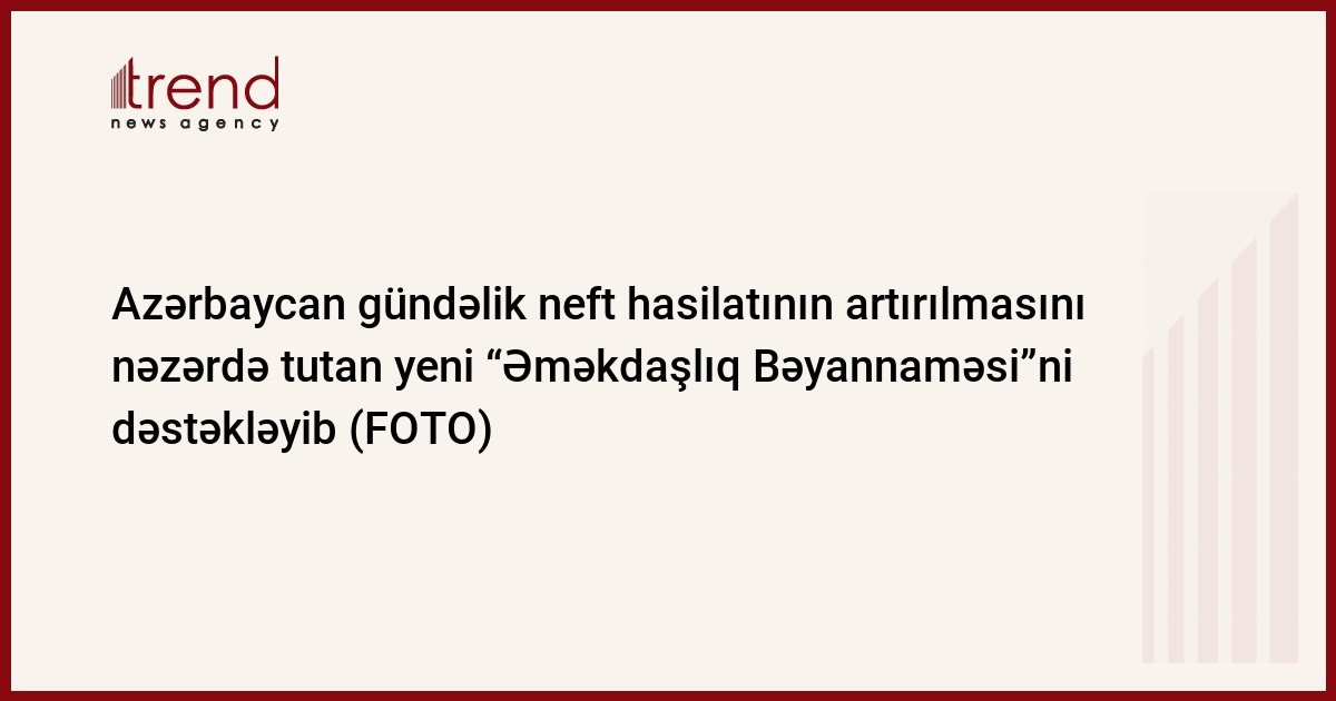 Energetika Nazirliyindən Trend-ə bildirilib ki, yeni “Əməkdaşlıq Bəyannaməsi” Azərbaycanda gündəlik xam neft hasilatının oktyabrda daha 7 min barrel artırılaraq 640 min barrelə çatdırılmasını, ixtisarla bağlı öhdəliyin isə 78 min barrel həcmində olmasını nəzərdə tutur.
