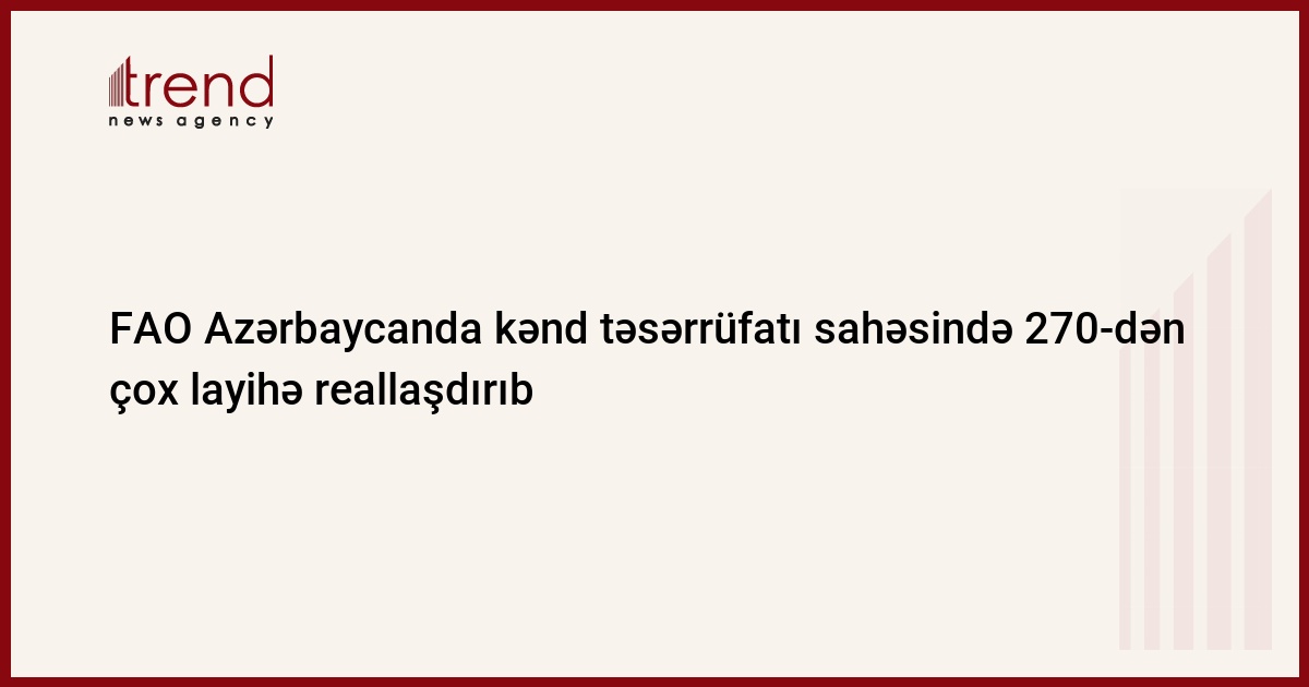 BMT-nin Ərzaq və Kənd Təsərrüfatı Təşkilatı (FAO) son dövrlərdə Azərbaycanda kənd təsərrüfatı sahəsində 270-dən çox layihə reallaşdırıb.