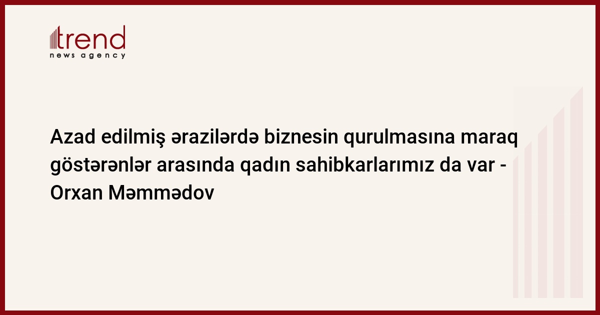 Trend-in məlumatına görə, bunu Kiçik və Orta Biznesin İnkişafı Agentliyinin İdarə Heyəti sədri Orxan Məmmədov “Qarabağın və Şərqi Zəngəzurun iqtisadi inkişafında qadın sahibkarlığının rolu” mövzusunda konfransda deyib.