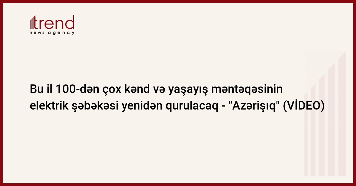 “Azərişıq” ASC yeni ildən etibarən regionlarda yeni layihəyə start verib. Bu il ərzində ümumilikdə, müxtəlif regionları əhatə edən 100-dən çox kənd və yaşayış məntəqəsinin elektrik enerji şəbəkəsi tamamilə yenidən qurulacaq.