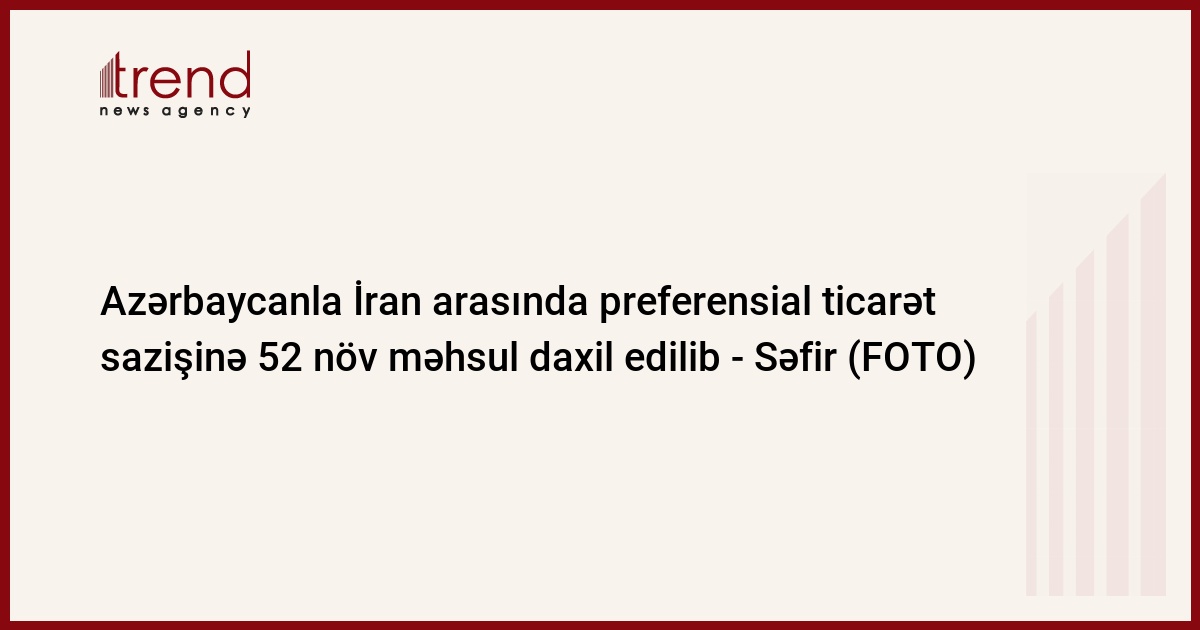 Azərbaycan və İran arasında hazırlanmaqda olunan və ticarətin asanlaşdırılmasını nəzərdə tutan preferensial ticarət sazişinə 52 növ məhsulun adı daxil edilib.