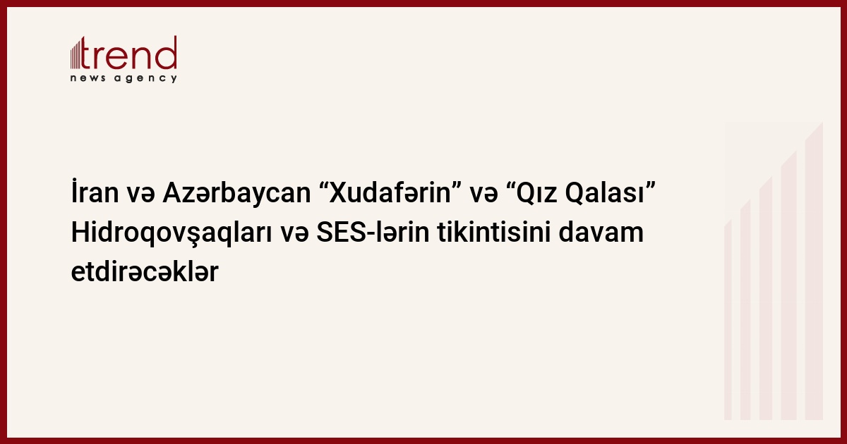 İranla Azərbaycan arasında Araz çayı üzərində “Xudafərin” və “Qız Qalası” hidroqovşaqlarının və su elektrik stansiyalarının tikintisinin davam etdirilməsi və istismarı üzrə razılıq əldə olunub.