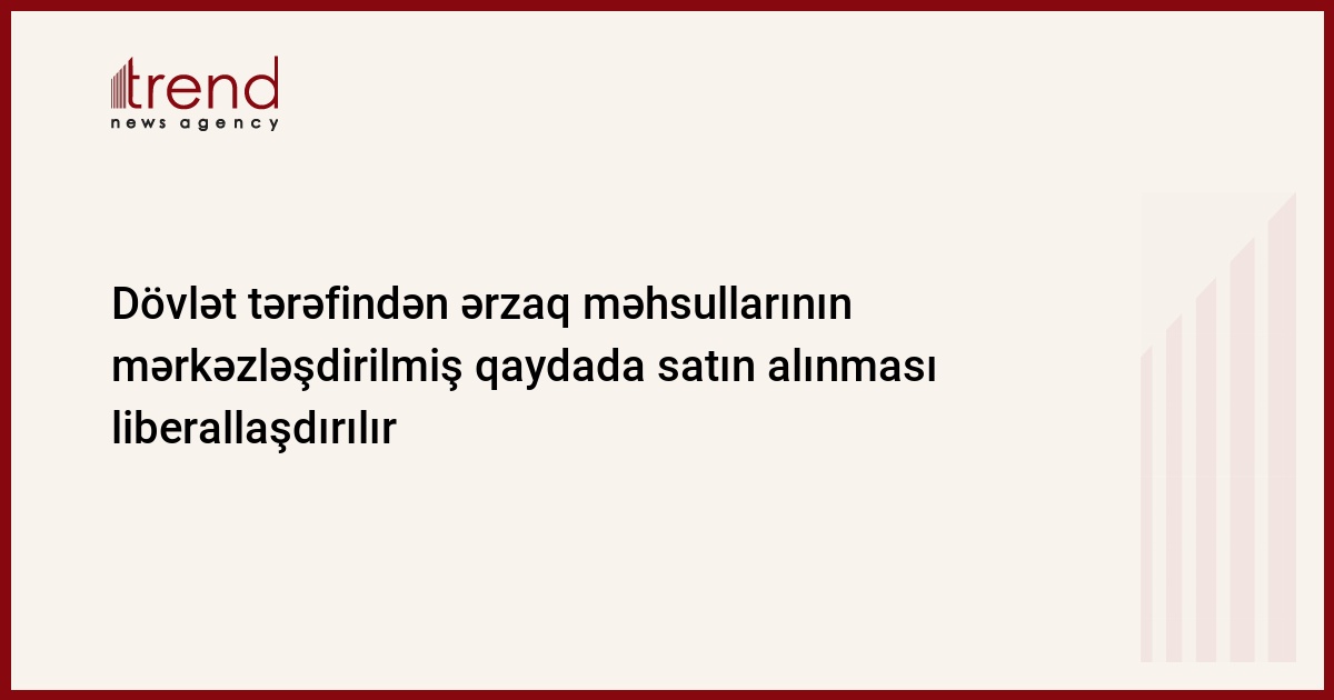 Dövlət müəssisə və təşkilatları tərəfindən ərzaq məhsullarının mərkəzləşdirilmiş qaydada satın alınması liberallaşdırılır.