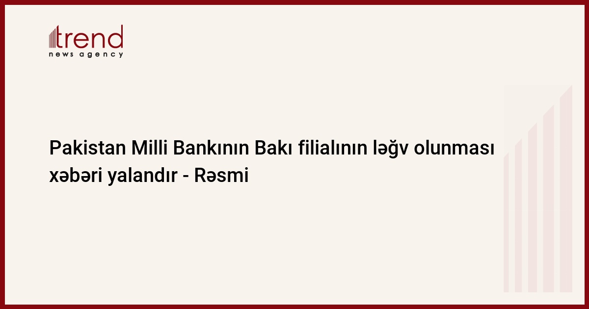 Trend-in müraciətinə cavab olaraq filialdan bildiriblər ki, son vaxtlar KİV-lərdə yayılmış Pakistan Milli Bankının Bakı filialı ləğv olunması barədə məlumatlar həqiqəti əks etdirmir.