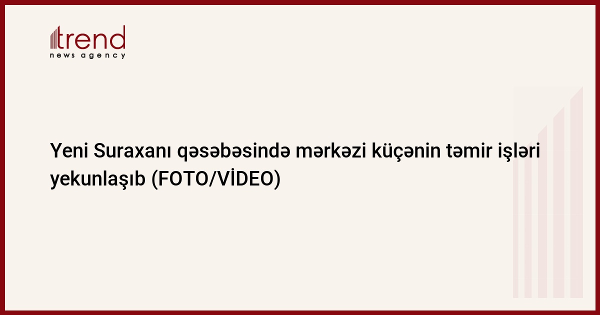 Cari ilin “İnvestisiya Proqramı”na əsasən, Azərbaycan Avtomobil Yolları Dövlət Agentliyi tərəfindən Suraxanı rayonu Yeni Suraxanı qəsəbəsində Mərkəzi küçənin təmir işləri yekunlaşıb.